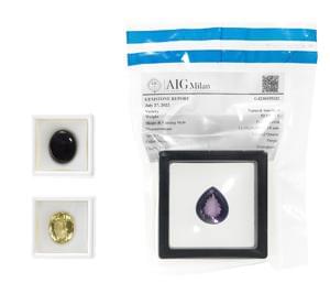 Une améthyste taille ovale (31,14 ct), une citrine taille poire...