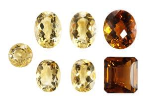 3453. *Lot de sept citrines sur papier taille ovale et octogonale