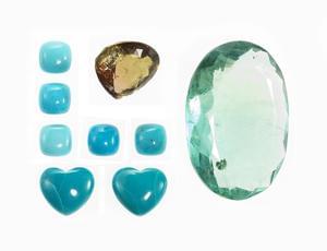 Une fluorite bleu-vert (98,13 ct), une tourmaline jaune taille p...