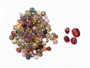 3454. *Lot de rubis taille ovale et taille poire sur papier