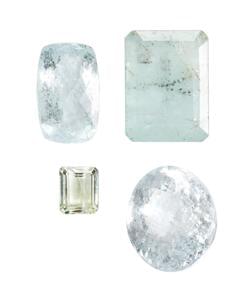 Trois aigues-marines, l'une taille rectangle (26,83 ct), l'autre...