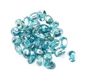 3457. *Lot de topazes bleues de diverses tailles sur papier