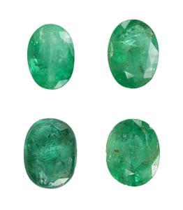 3495. *Lot de quatre émeraudes "minor oil" taille ovale sur papier