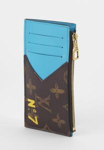 Cuir lisse bleu et toile Monogram, compartiment pour quatre cart...