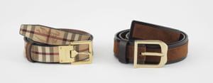 L'une en cuir et tartan iconique, boucle en métal doré siglée, L...
