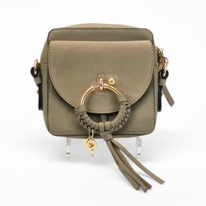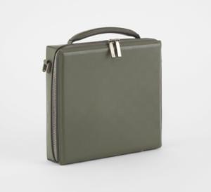 Cuir damier ton sur ton kaki, intérieur velours gris, 24x22x6 cm