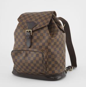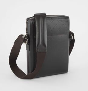 Toile damier ébène, fermeture rabat aimantée, plaque siglée Loui...