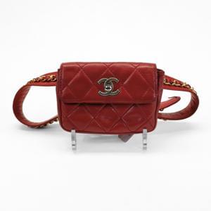 Cuir rouge matelassé, rabat à fermoir tourniquet double C doré e...