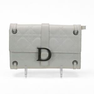 Cuir blanc matelassé, garniture argentée, fermoir monogrammé D,...