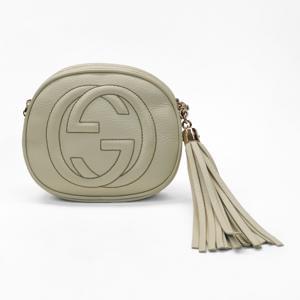 Cuir grainé ivoire, logo GG en surpiqûres taupe, bandoulière en...