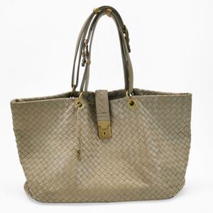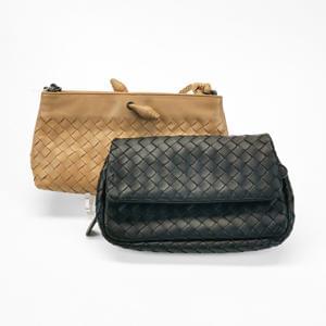 Cuir tressé taupe, fermoir latéral avec clef, intérieur en nubuc...