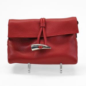 Cuir Taurillon, logo rouge, blanc et noir stylisé, fermeture zip...