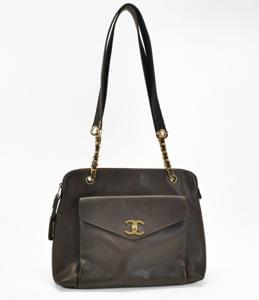 Cuir Epi noir et maillons stylisés dorés et argentés, fermeture...