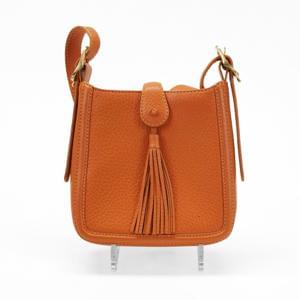 Cuir grainé orange, intérieur en soie violette avec deux poches...