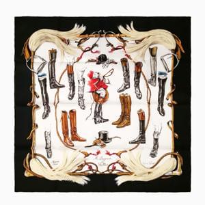 A décor de bottes de cavalier sur fond blanc, bordure noire et d...