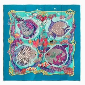 A décor de poissons sur fond turquoise et bordure bleu canard, s...