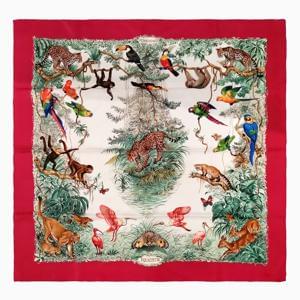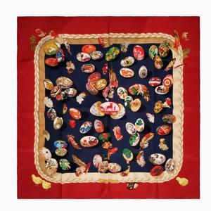 A décor de bride sur fond bordeaux et blanc, soie, 88x88 cm