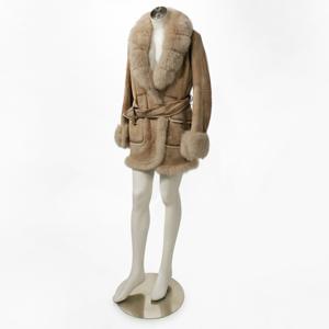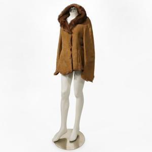 Cuir d'agneau retourné jaune moutarde, col à capuche et manchons...