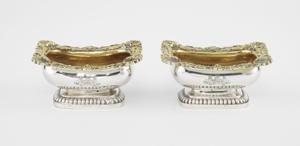 3754. Paire de salerons d'époque George III à motif de coquilles et go...
