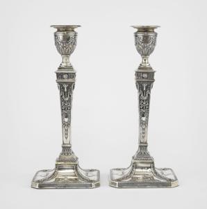 3728. Paire de chandeliers de style George III à décor néoclassique