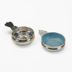 3786. Deux coupelles, l'une intérieur émaillé bleu l'autre à anse en é...