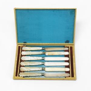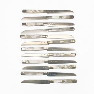 3799. Suite de 12 et 18 couteaux à manche en nacre