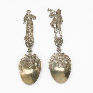 3795. Paire de cuillères de service aux manches figurant un couple de...