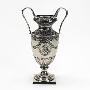 Argent à décor repoussé de putti et rinceaux, H 23 cm, 360 g