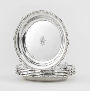 3802. Suite de 6 dessous de bouteille à bordure rythmée de rameaux fle...