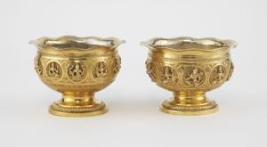 3830. Paire de coupes à décor de divinités dans des médaillons