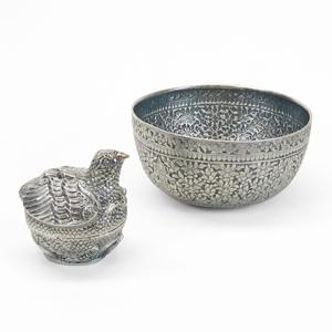 3831. Boîte à bétel en forme d'oiseau et bol armorié à décor de rincea...