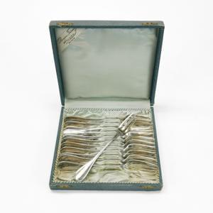 3845. 12 fourchettes à pâtisserie, modèle acanthes
