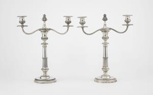 3856. Paire de flambeaux de style néoclassique à deux feux