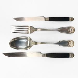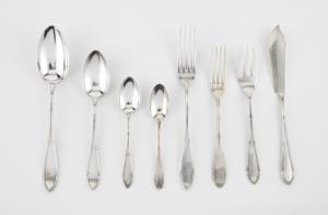 Jezler, argent 800, comprenant: 12 fourchettes et 12 cuillères à...