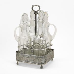 Italie, argent, 4 bouteilles en verre taillé, 330 g