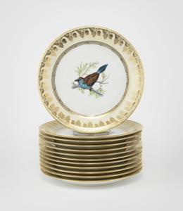3875. Suite de 10 assiettes à décor d'oiseaux