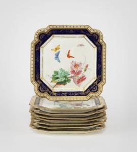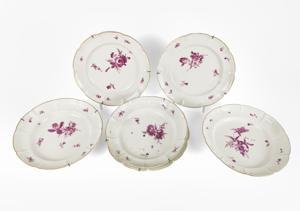 Ludwigsburg, porcelaine, comprenant: 2 assiettes plates et 3 cre...