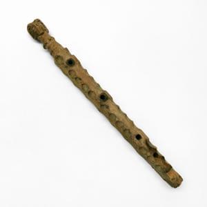 Bâton, bois sculpté à décor d'une tête, 47x5 cm. Provenance: fam...