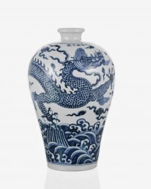 Porcelaine bleu blanc à décor d'un dragon, marque Xuande apocryp...