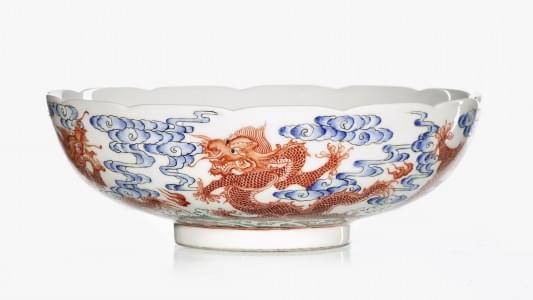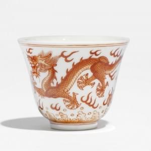 Porcelaine émaillée rouge de fer à décor de dragons, D 6 cm