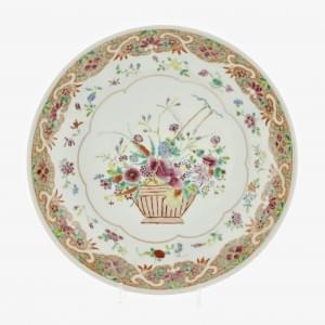 Porcelaine à décor d'un panier fleuri, D 34,5 cm