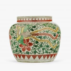 Porcelaine émaillée polychrome à décor de phénix et oiseaux sur...