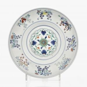 Porcelaine émaillée polychrome, D 19,5 cm