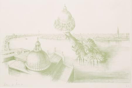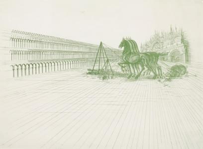 Piazza San Marco, Venise, lithographie en vert sur papier, signé...