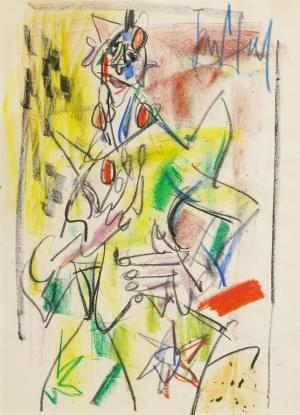 Clown, pastel et crayon de couleurs sur papier, 39x28 cm