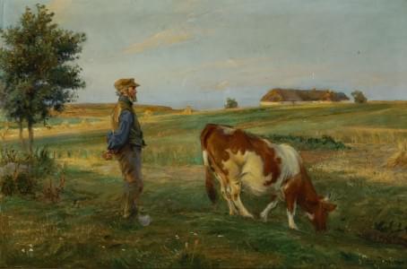 Le vacher, huile sur toile, signée et datée 1907, 71x106 cm