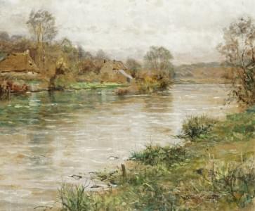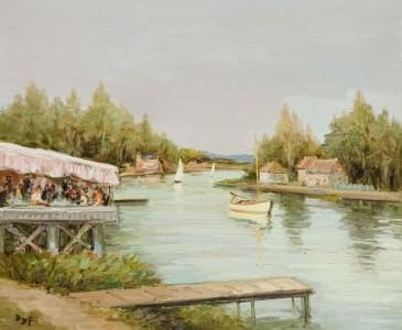 Scène de rivière, huile sur toile, signée, 60x72 cm