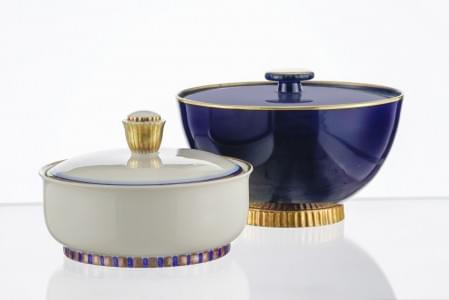Porcelaine à motif annelé rehaussé de filets dorés, daté 1938, H...