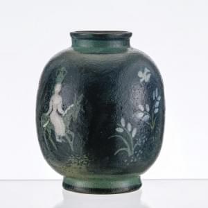 Vase ovoïde à décor de cavalier et porteuse d'eau, céramique éma...