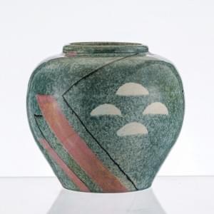 Vase à épaulement, céramique émaillée à décor abstrait rose, bla...